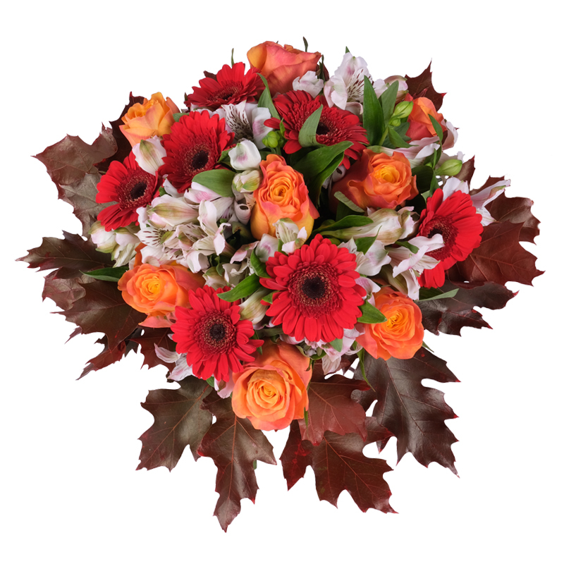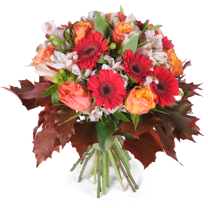 Kompozycja z róż, gerber i alstromerii to bukiet, który emanuje naturalnym pięknem. Liście klonu dodają mu głębi i niepowtarzalnego charakteru. To doskonały wybór dla osób, które lubią elegancję w prostym wydaniu. Idealny jako upominek lub ozdoba. W każdej sytuacji wygląda doskonale. Podaruj komuś wyjątkowemu!
