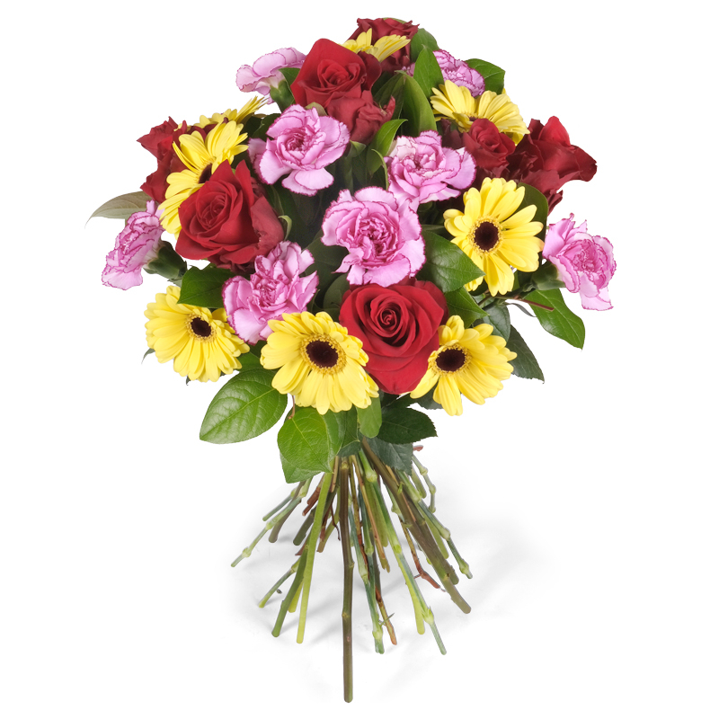 Róże, gerbery i goździki tworzą elegancką i ponadczasową całość. Ten bukiet to symbol dobrego gustu i pozytywnych emocji. Doskonały dla każdego, kto lubi klasyczne połączenia. Wprowadza harmonię i spokój. Zawsze wygląda wyjątkowo, więc sprawdzi się jako podarunek dla wyjątkowej osoby!